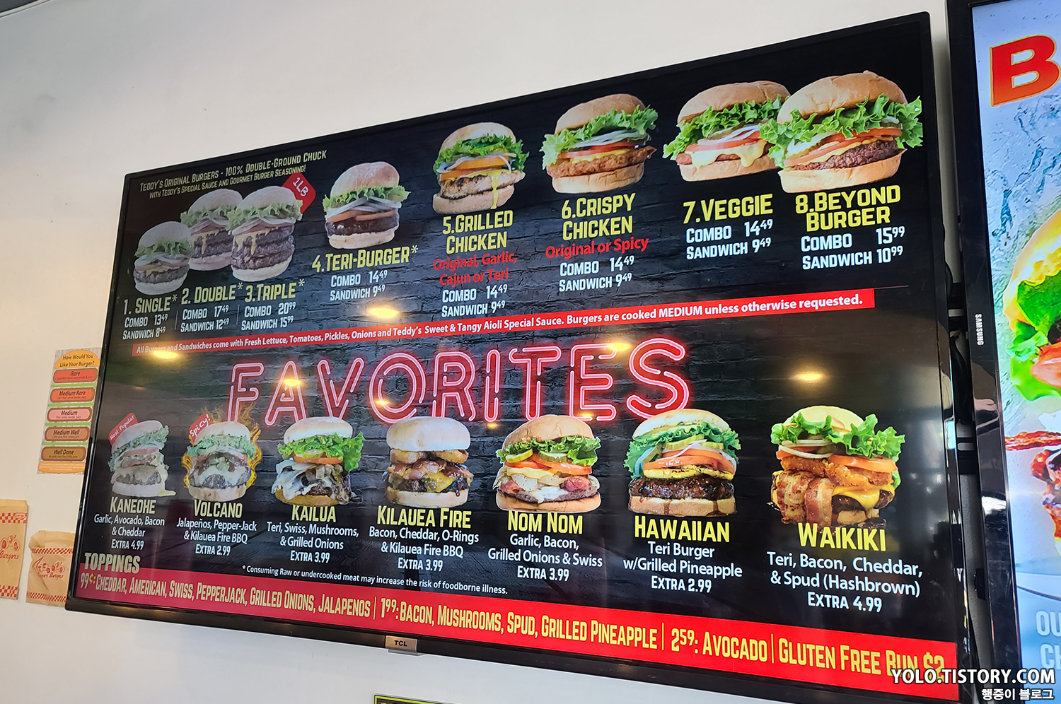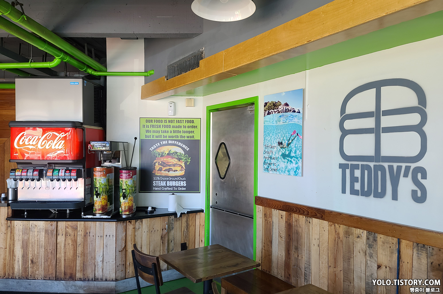 점심은 테디스 버거에서 먹기로 했다. 하나우마 베이 가는 길에 위치한 코코 마리나 센터에 위치하고 있다. 오전 10시부터 영업을 시작한다고 쓰여있었는데, 10시가 지나도록 가게 문은 열지 않았고 10분이나 돼서야 열었던 것 같다. 이게 바로 아메리칸 타임..?