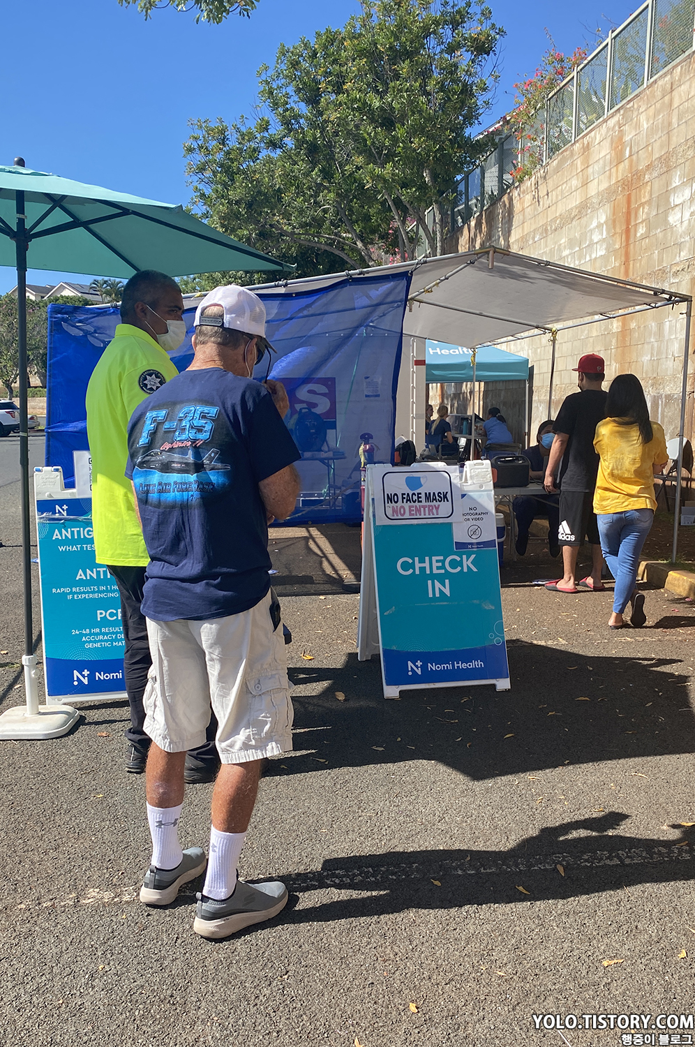 출국 하루 전날이니 한국으로 돌아가기 위해 신속항원검사를 받으러 다시 와이켈레 아울렛으로 이동했다. 알라모아나 센터는 유료라고 한다. 글을 쓰는 이 시점엔 와이켈레도 유료화가 되었을 듯. 켈빈 클라인 매장 뒤의 주차장에 위치하고 있었다. 노미 헬스에서 예약했던 QR 코드를 보여주고 생년월일을 말해주면 검사받을 수 있다. 줄이 별로 없어서 금방 끝난 듯? 영업시간은 오후 5시까지니 주의!