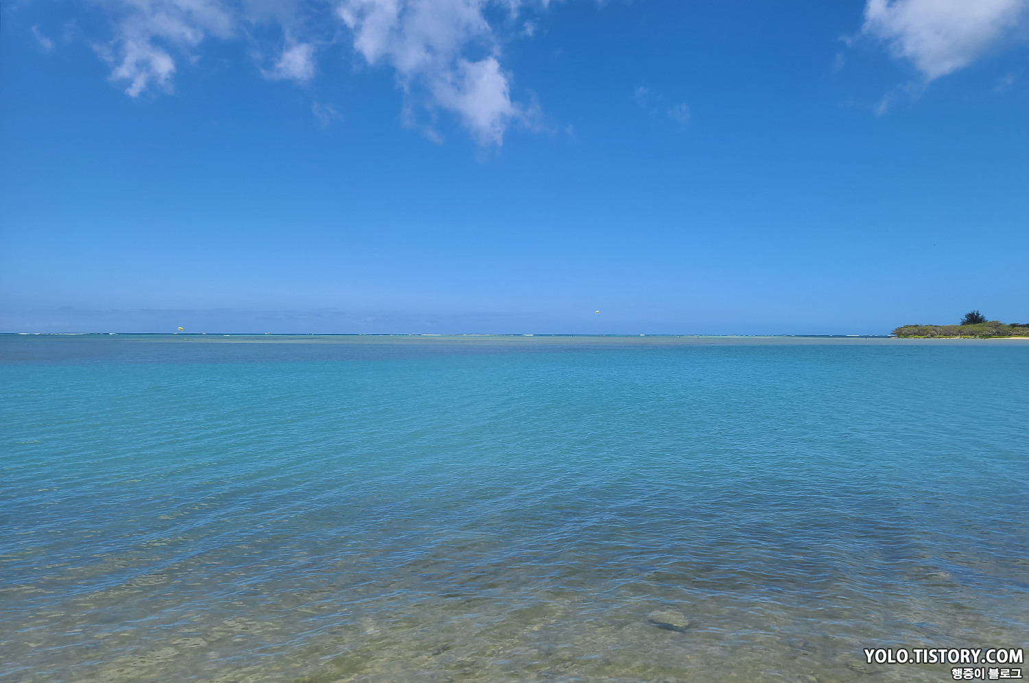 점심을 먹고도 시간이 남아서 오는 길에 보았던 마우나루아 베이 비치 공원도 잠깐 들렀다. 바다가 엄청 얕고 지평선이 끊임없이 펼쳐 있었다. 주차장 안쪽에 주차하면 화장실을 찾을 수 없고, 화장실은 입구 쪽에 위치하고 있으니 참고!
