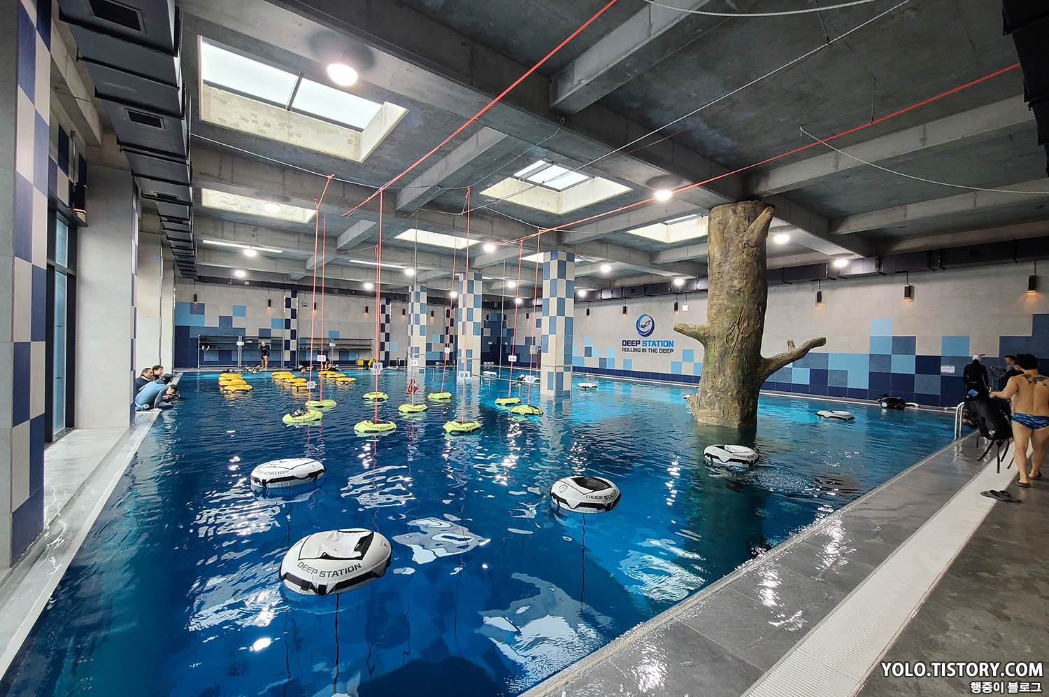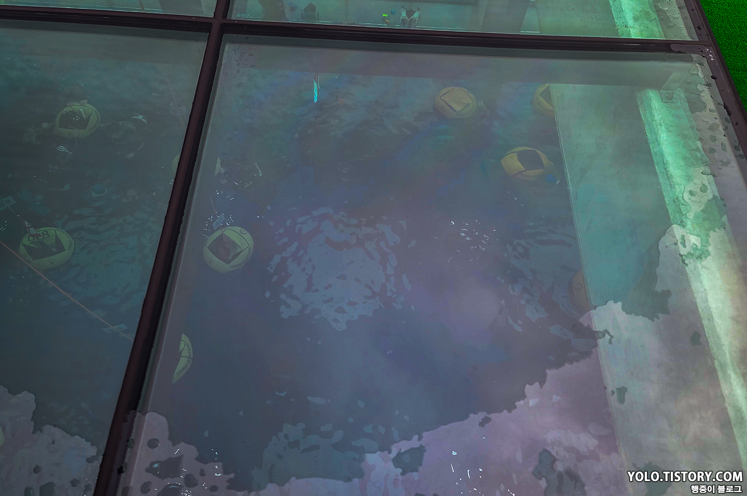각 구역마다 수심이 다른데, 1.5m / 2m / 5m / 10m / 16m / 35m 수심으로 이루어져있다. 35m 수심은 멀리서 보았을땐 잘 보이지 않았다.
