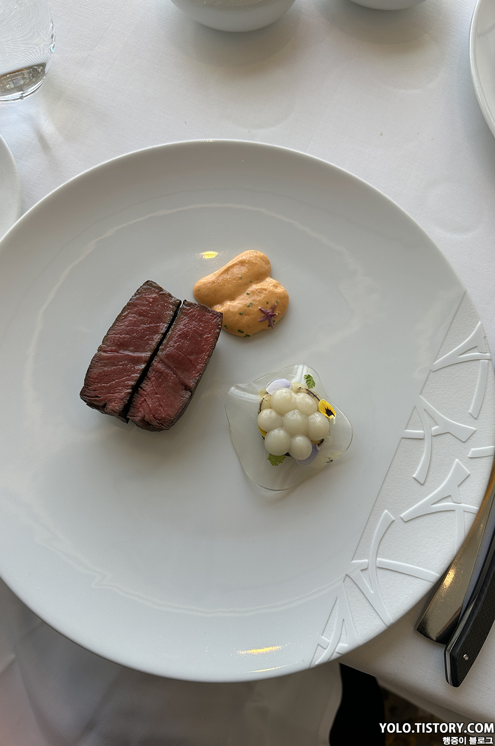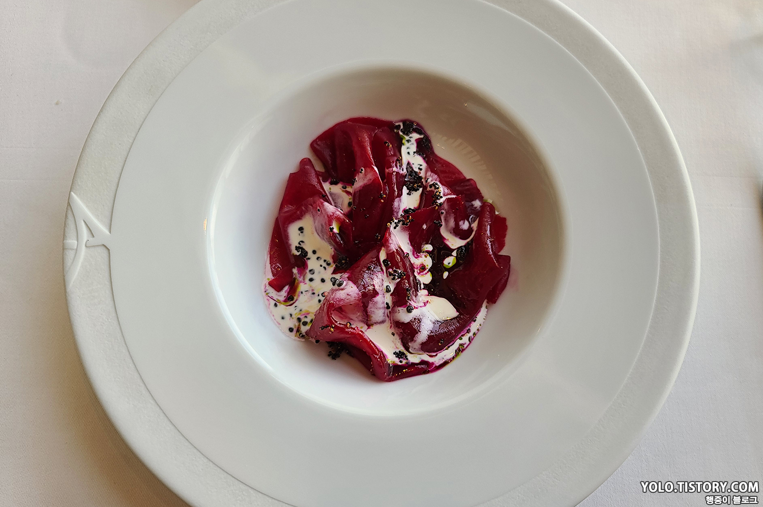 호불호가 강할 것 같은 비트 요리. 일단 비주얼 자체는 꽃을 표현한 듯한 느낌이었는데, 비트 특유의 향과 미끌거림이 조금은 익숙지 않았다. 아내는 별로 좋아하지 않아서 먹다 남긴 메뉴.