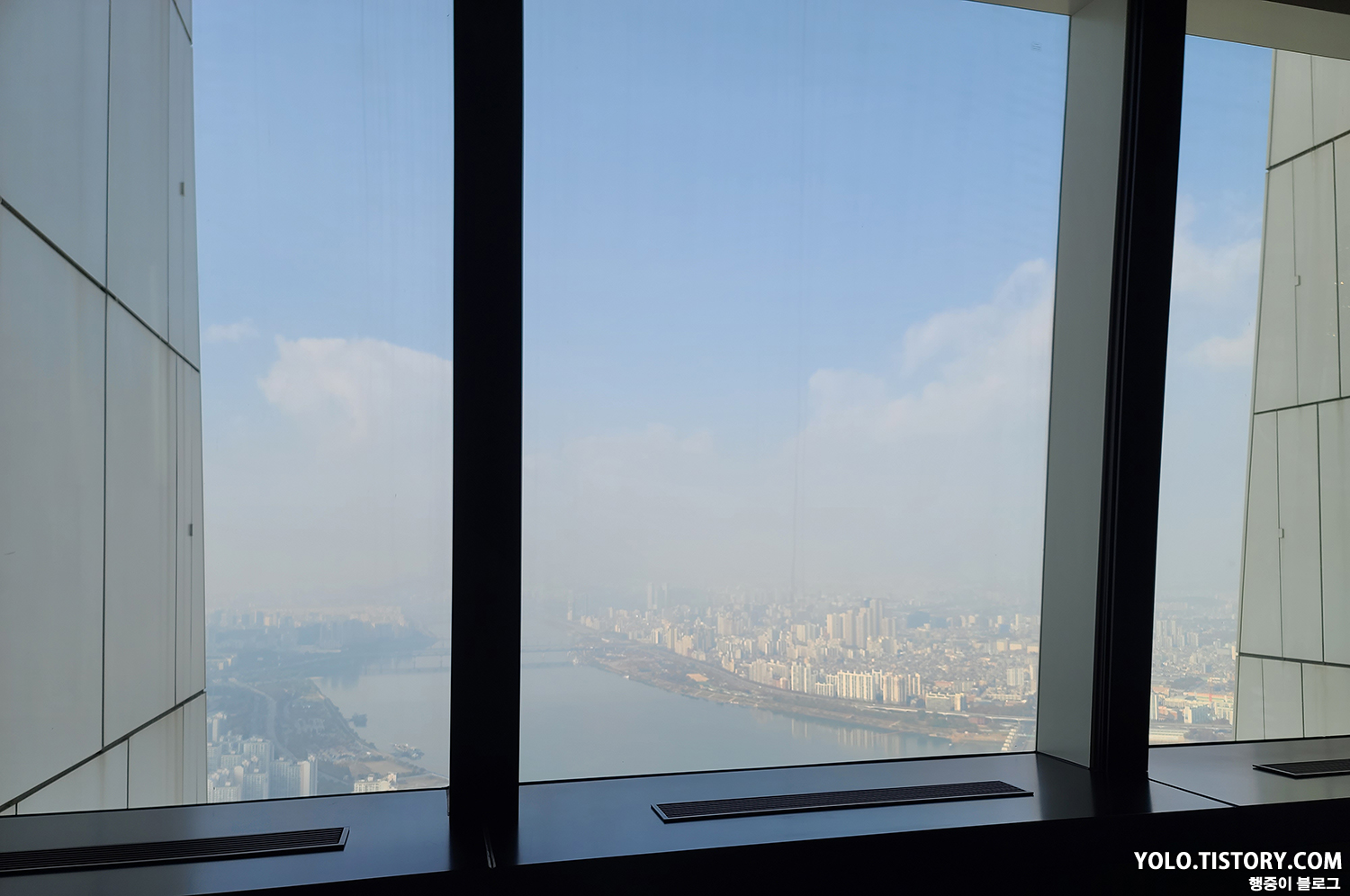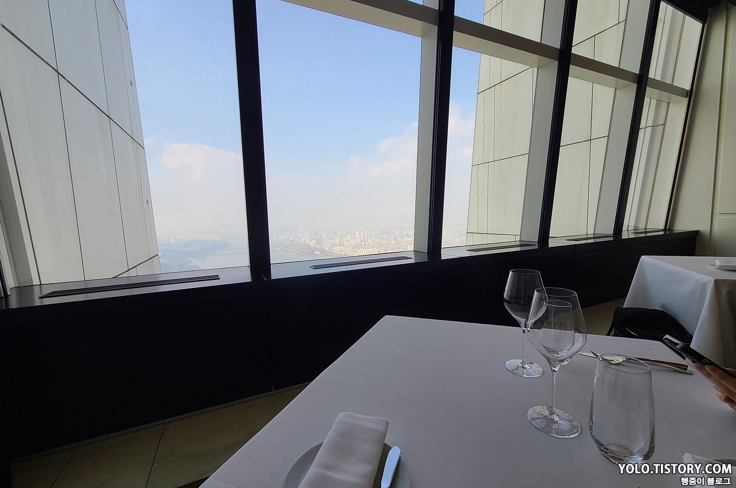 우리가 안내받은 자리는 입구에서 가깝고 한강이 바로 보이는 자리였다. 기둥들과 앉아서 보기엔 조금 높은 단차가 조금 아쉬웠다.