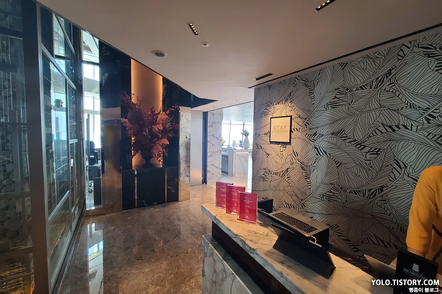 2주년 결혼기념일을 맞이하여 잠실 시그니엘에 위치한 스테이 레스토랑에 방문했다. 시그니엘 스테이는 시그니엘 호텔 로비보다 2층 높은 81층이고, 같은 층에는 한식 레스토랑인 비채나 위치하고 있다. 방문 예약은 네이버 예약을 통해 간편하게 예약할 수 있다.