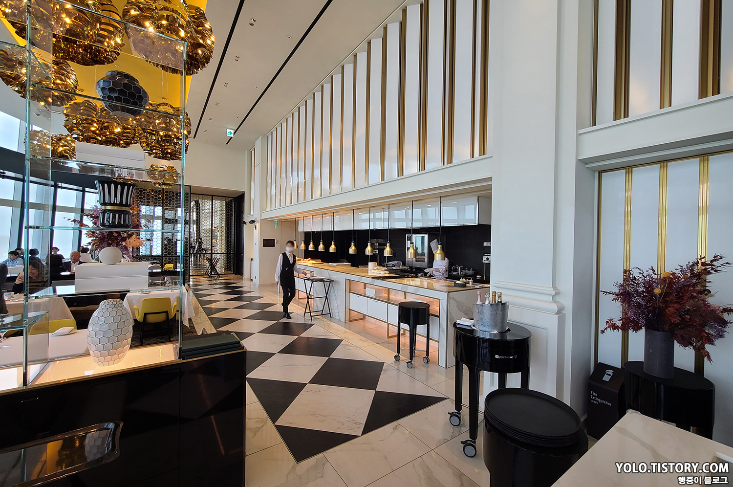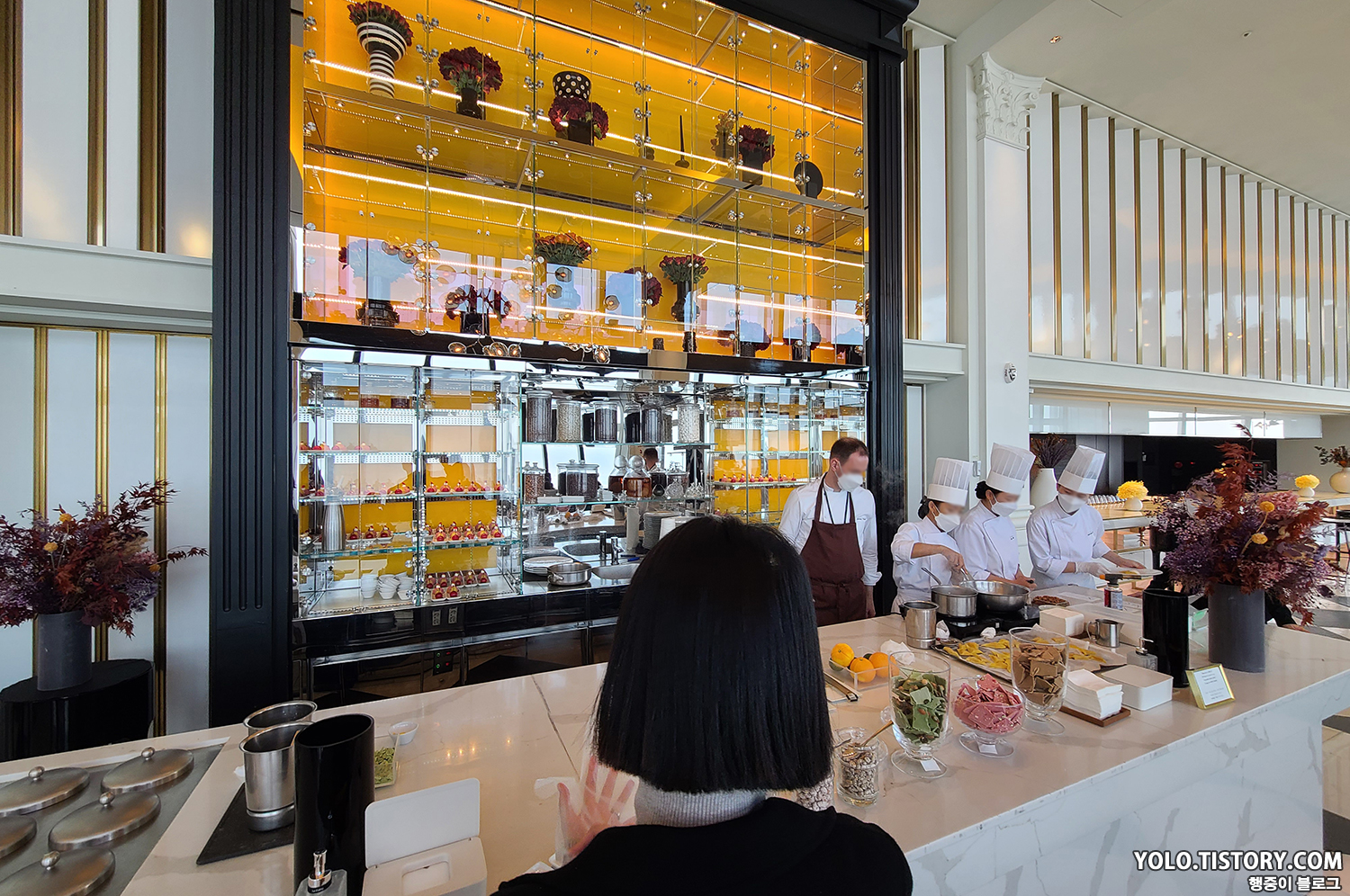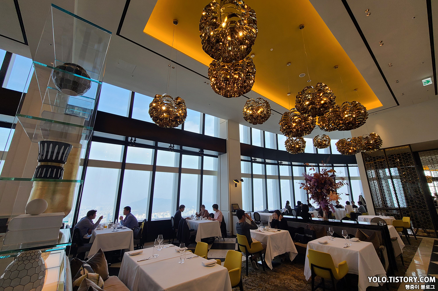 인테리어는 화이트/베이지 톤을 기반으로 골드와 옐로로 포인트를 준 듯한 느낌이었다.