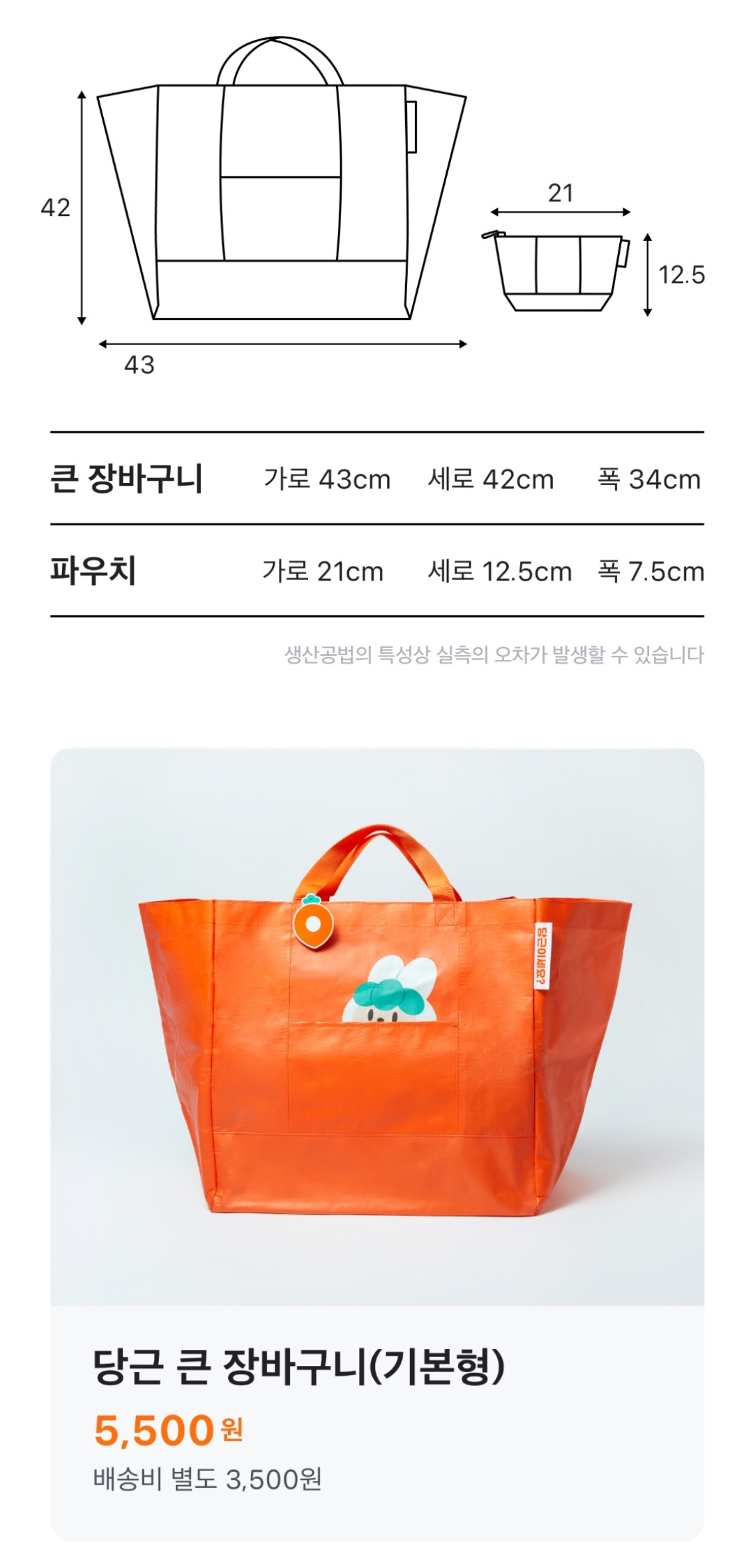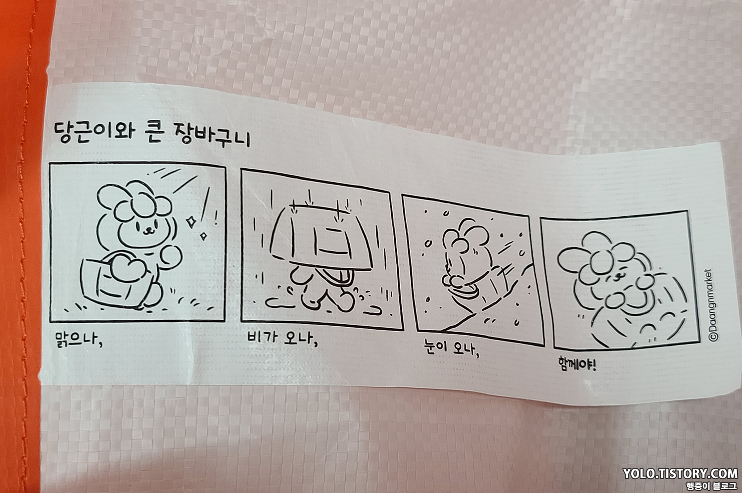 띵동-, 당근마켓에서 당근 큰 장바구니가 판매된다는 푸시알림이 오길래 들어가봤다. 마침 사용하던 장바구니가 작아서 큰 장바구니가 필요했고, 최근들어 당근으로 물건파는 일이 잦아져서 구매를 결심! 배송비 3,500원이 좀 아까웠지만..