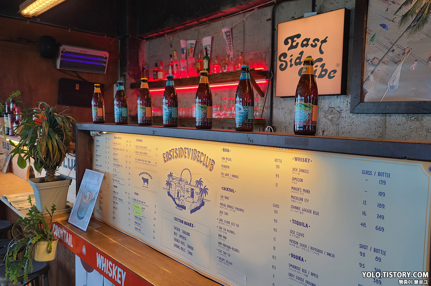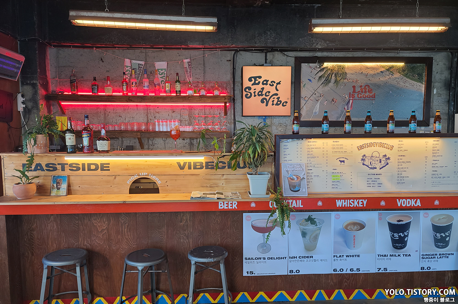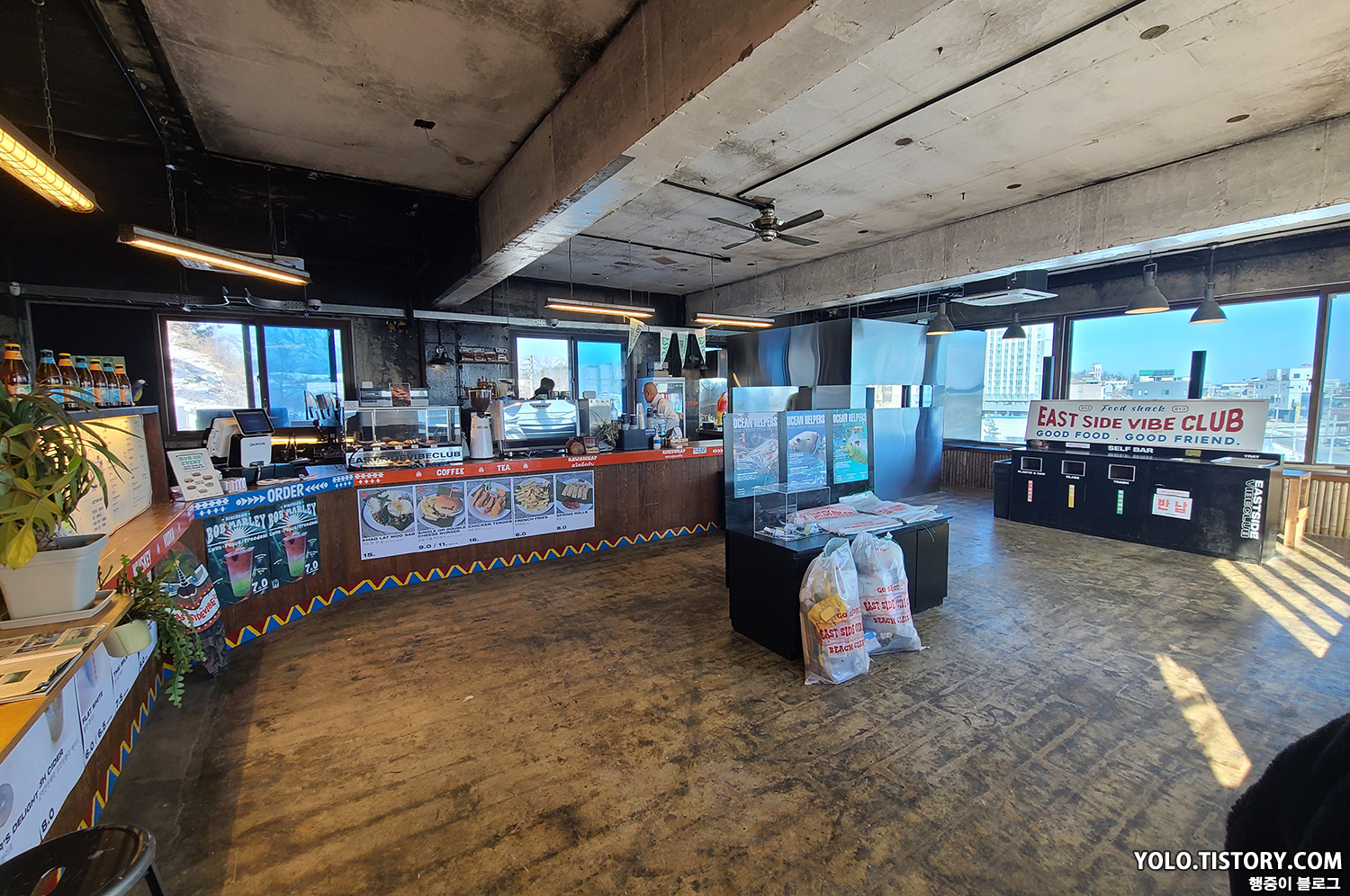 숙소 근처에 있었던 카페 이스트사이드바이브클럽. 주류도 팔고 버거도 팔고 복합적인 문화 공간이다. 할로윈 때는 파티도 진행했던 것으로 보였다. 고성에 이런 멋진 곳이 있다니 놀라웠다.
