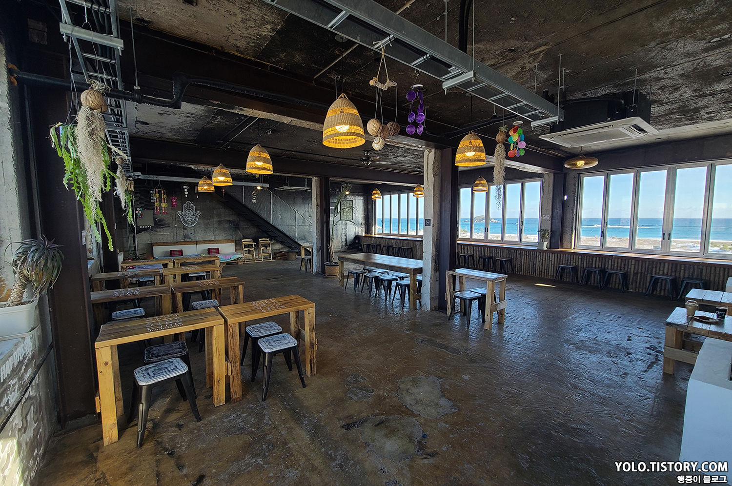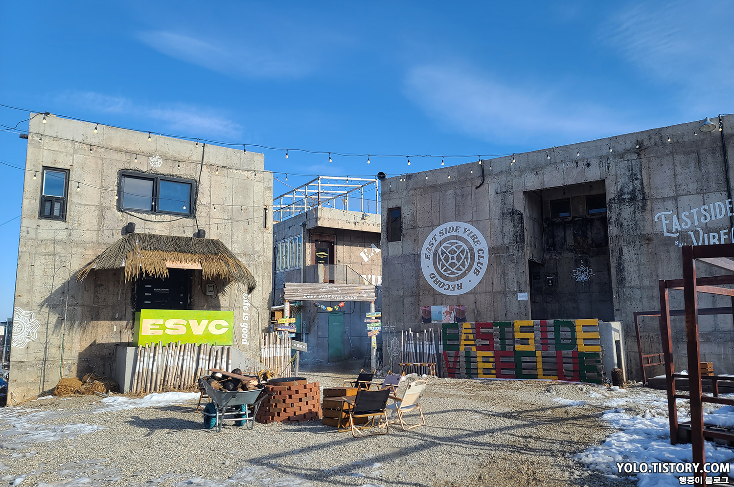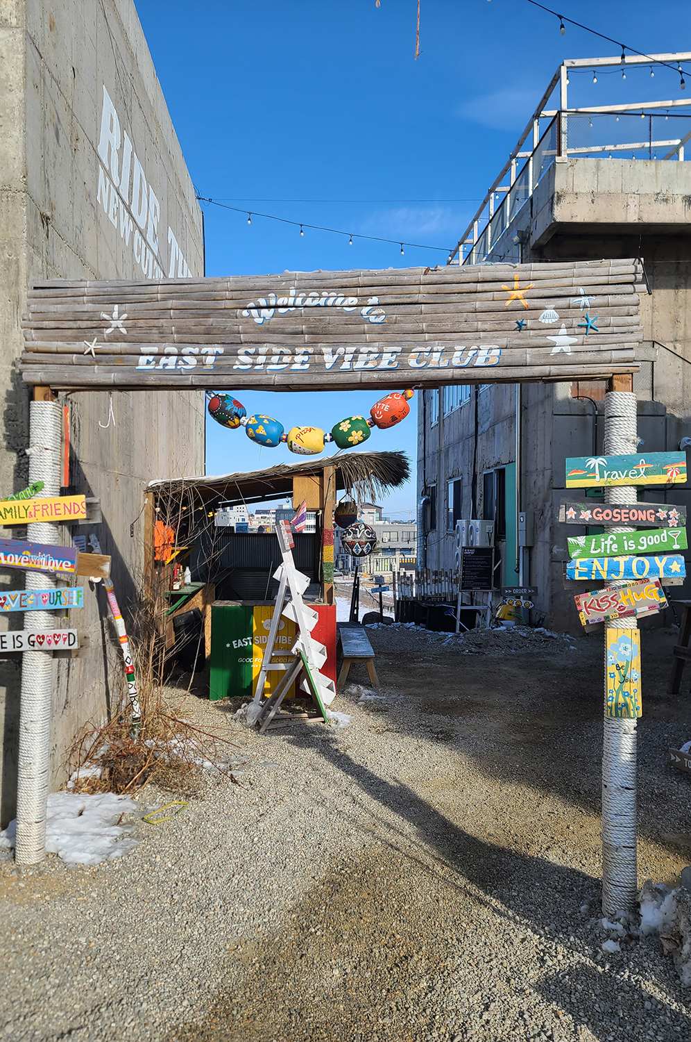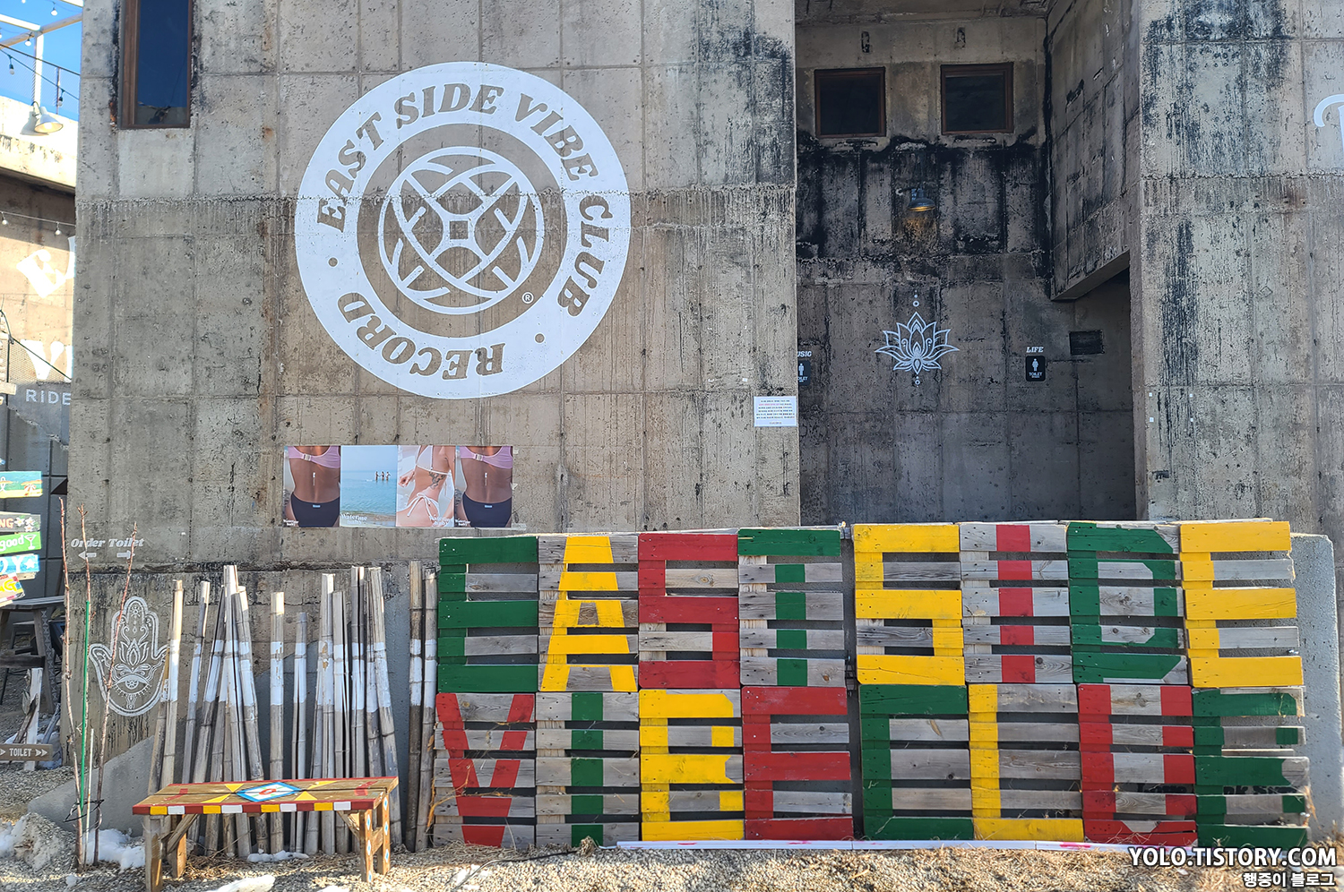 숙소 근처에 있었던 카페 이스트사이드바이브클럽. 주류도 팔고 버거도 팔고 복합적인 문화 공간이다. 할로윈 때는 파티도 진행했던 것으로 보였다. 고성에 이런 멋진 곳이 있다니 놀라웠다.
