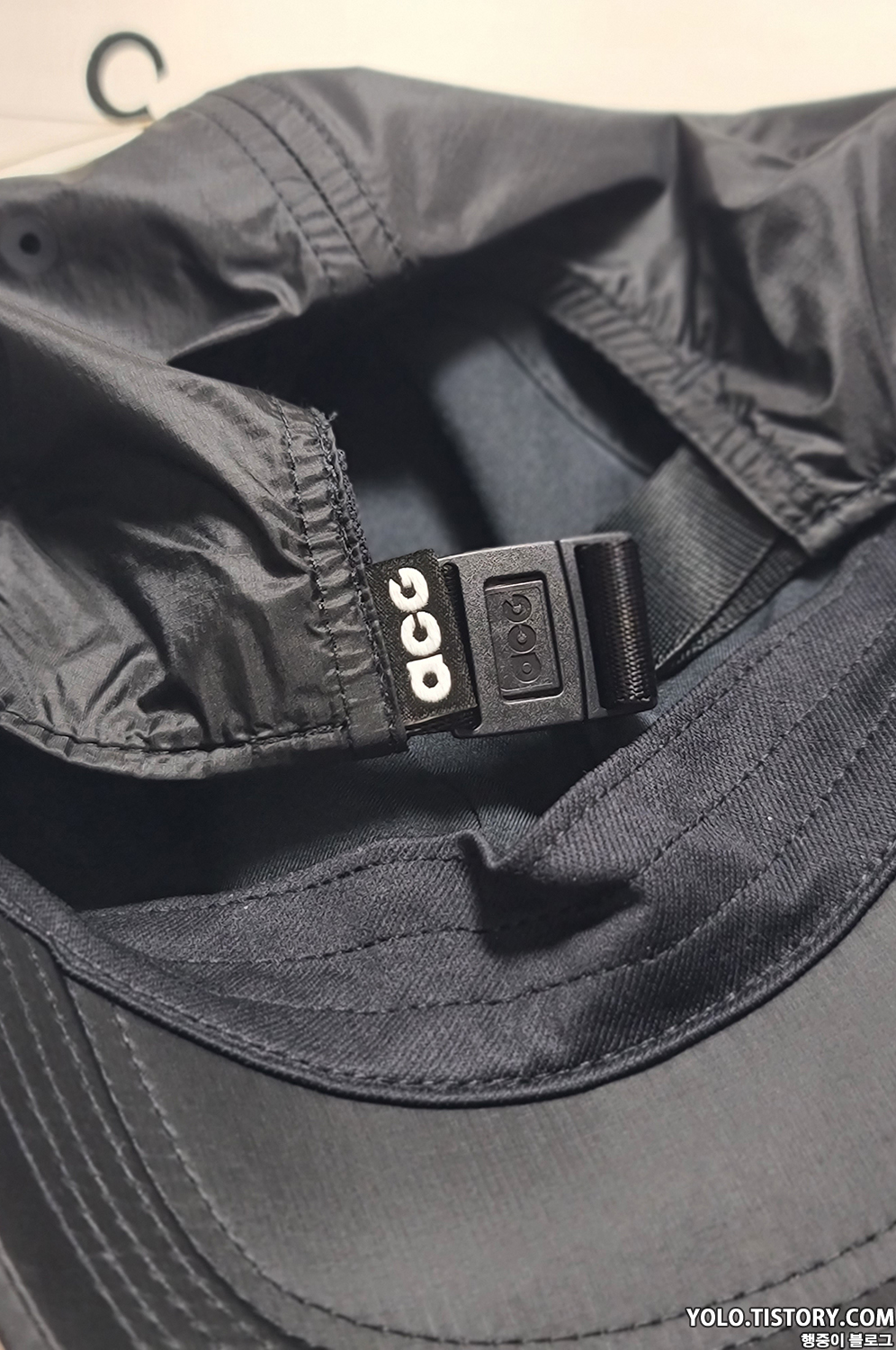 모자에 자수로 박힌 ACG 로고가 매력적인 트레일 캡이다. 재생 폴리에스터 소재로 매우 가벼운 게 특징이다. 이로 인해 모자를 쓰지 않을 때 흐물거리는 경향이 있다. 일반적은 6 패널 디자인으로 제작되었고 에어로빌 기술이 사용되었다고 한다. 버클 쪽에도 acg 문구가 새겨져 있다.