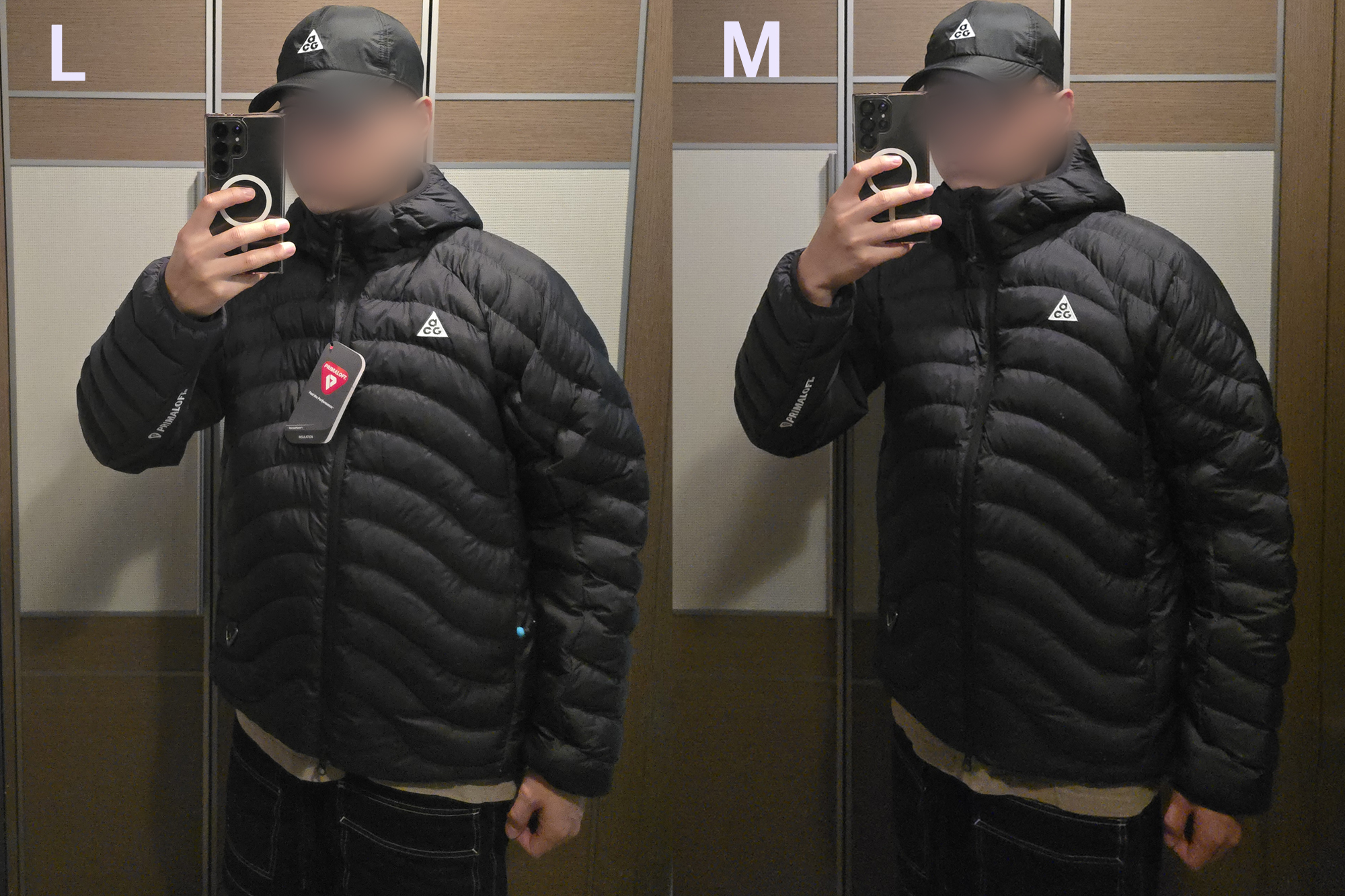L 사이즈는 두꺼운 후드티까지 커버가 가능할 것 같고, M 사이즈는 조금 힘들 듯하다.